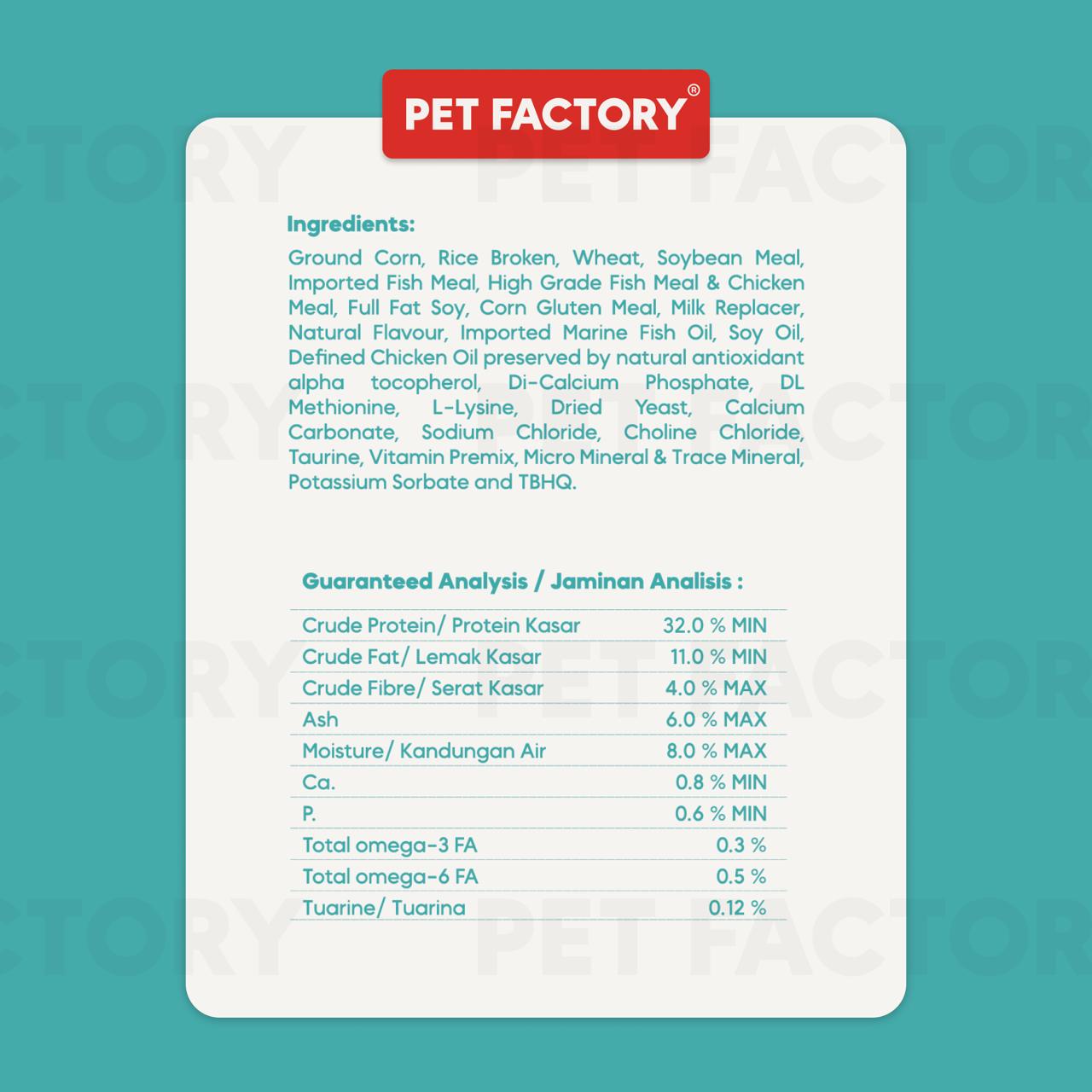 ![[ Pet Factory ] 10kg Premium Cat Food Ocean Fish 10kg For Hair & Skin ( Protein 32%) Makanan Kucing .](http://petfactoryofficial.com/cdn/shop/files/6894794db8873_1754560845.jpg?v=1768971061&width=1445)